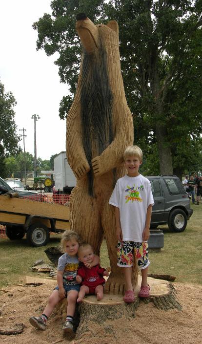 Bill's grandchildren can often be found watching their grandfather carve. Some of them even have toy chain saws that