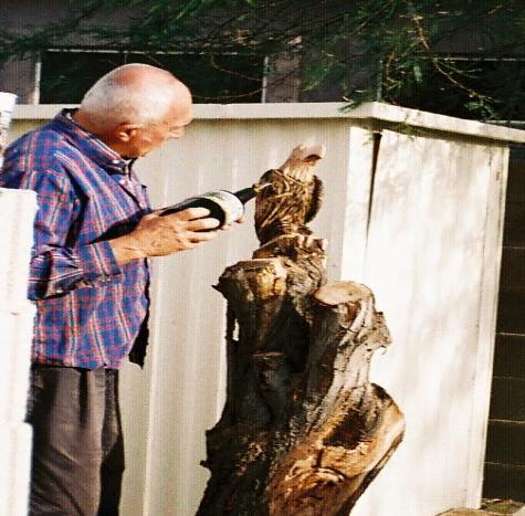 As seen in this photo, Bill's eagles are the patriotic bald eagle. By torching detail into the carving, Bill is able to contrast